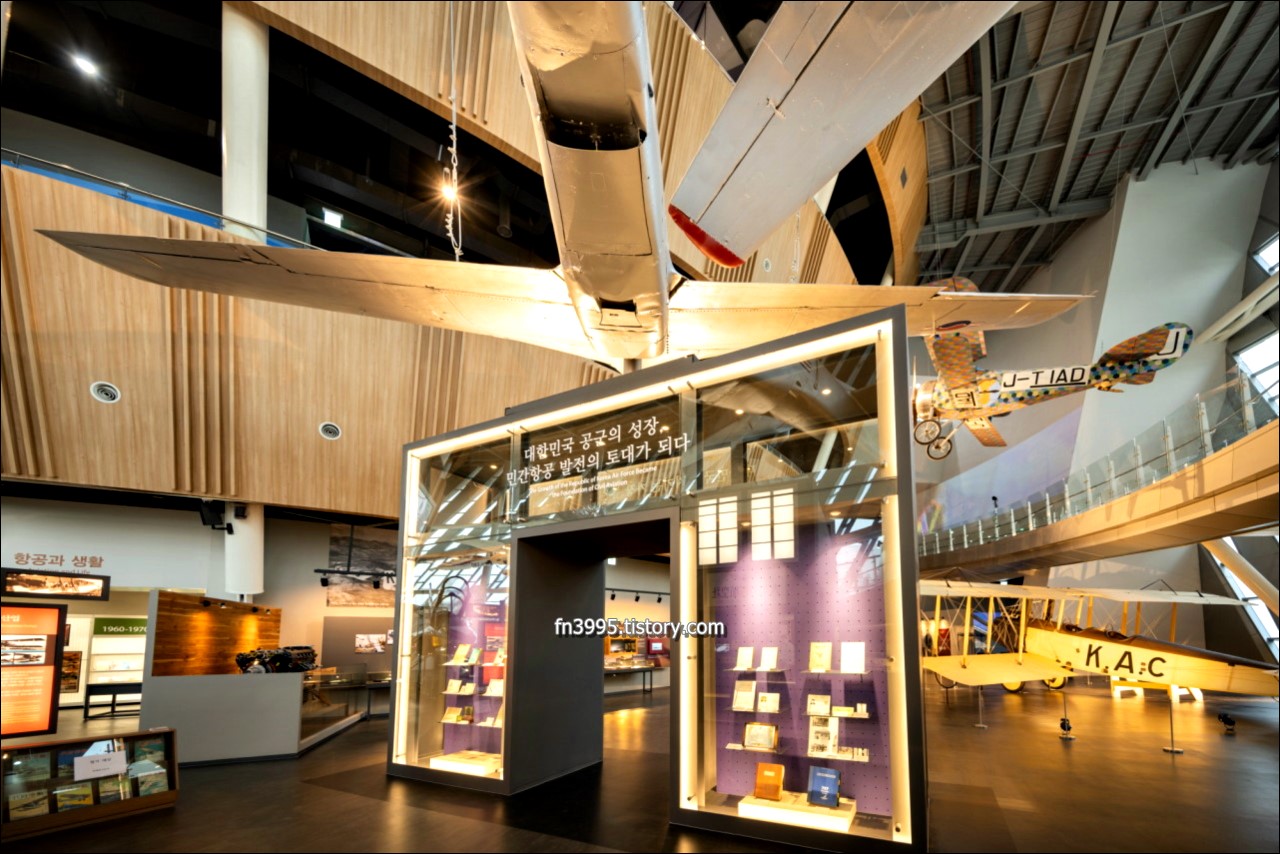 박물관은 항공역사, 항공산업, 항공생활, 야외전시, 기획전시로 나누어져 있으며, 국내, 해외의 항공역사를 소개하고 있습니다. 실물 비행기 16대가 전시되어 있습니다. 관람료는 무료입니다. 여러가지 체험들이 있습니다.