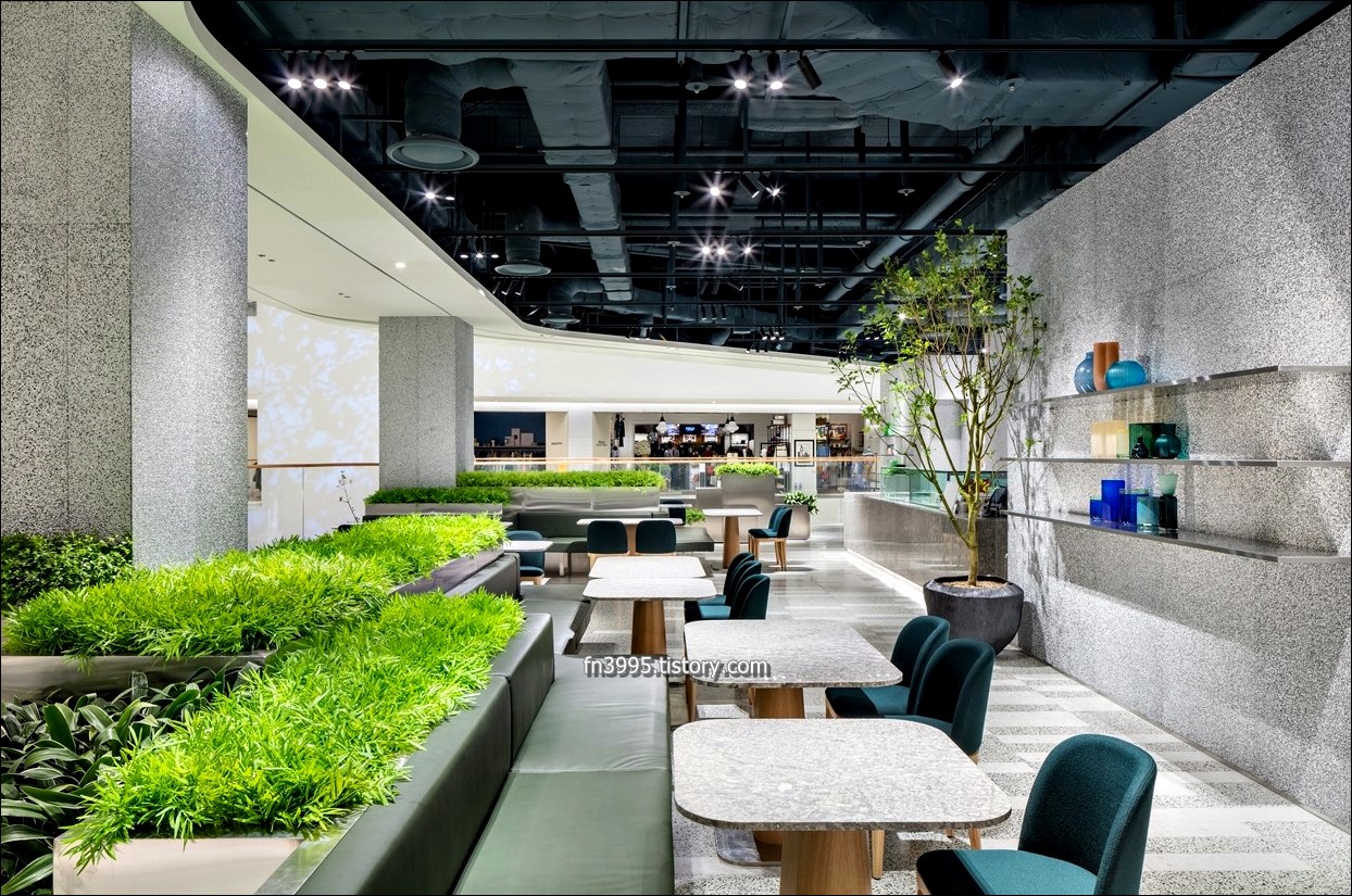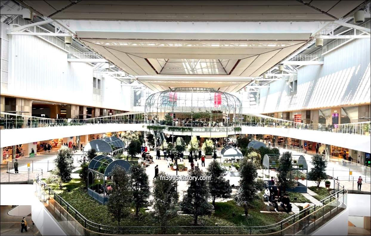 약 1000평의 대규모 실내 정원과 천연 잔디, 20여 미터의 높은 유리 천장에서 들어오는 자연 채광은 더현대 서울의 자랑입니다. 카페, 음식점, 여러 상점들은 최신 트렌드에 맞춰서 굉장히 세련됐습니다. 외국인 관광객들도 많이 방문하고 있습니다.