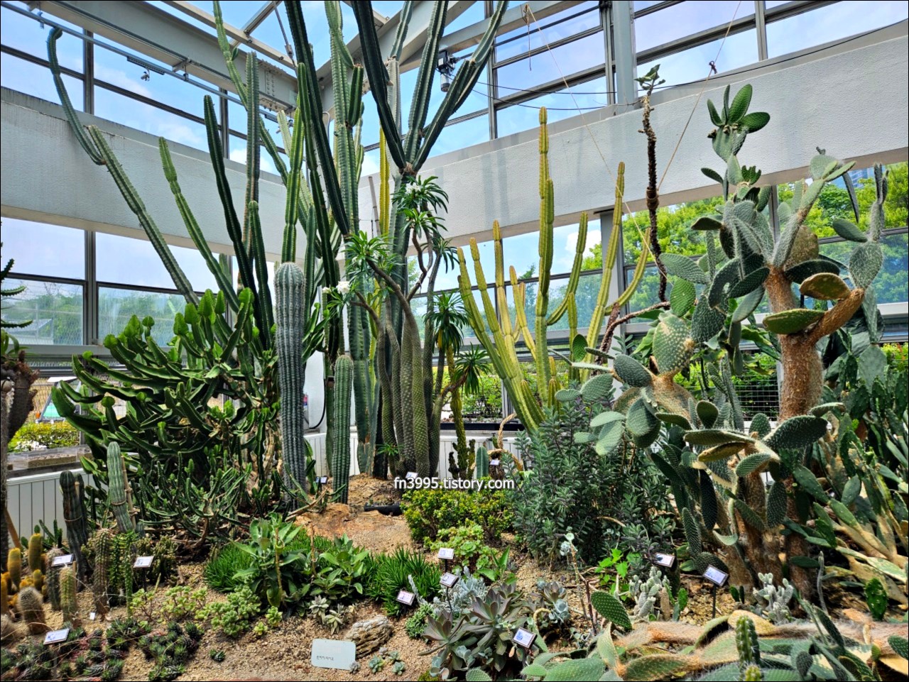 온실에 가보면 세련되게 잘 꾸며놨습니다. 이국적인 느낌도 있습니다. 지하1층 안내데스크 옆에서 오디오가이드를 무료로 대여해 주고 있습니다. 주요 식물 앞에 번호가 있어서 해당식물에 대한 자세한 설명을 들을 수 있습니다. 실내가 습하고 더워서 추운 겨울에 오면 외국에 온 듯한 느낌을 줍니다.